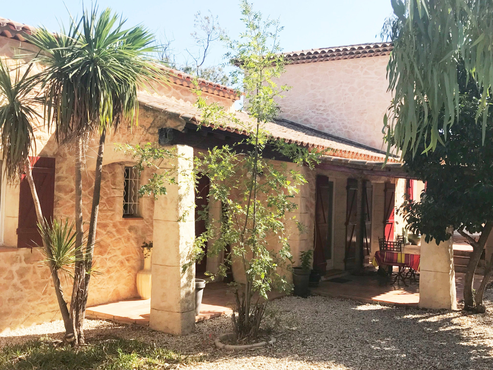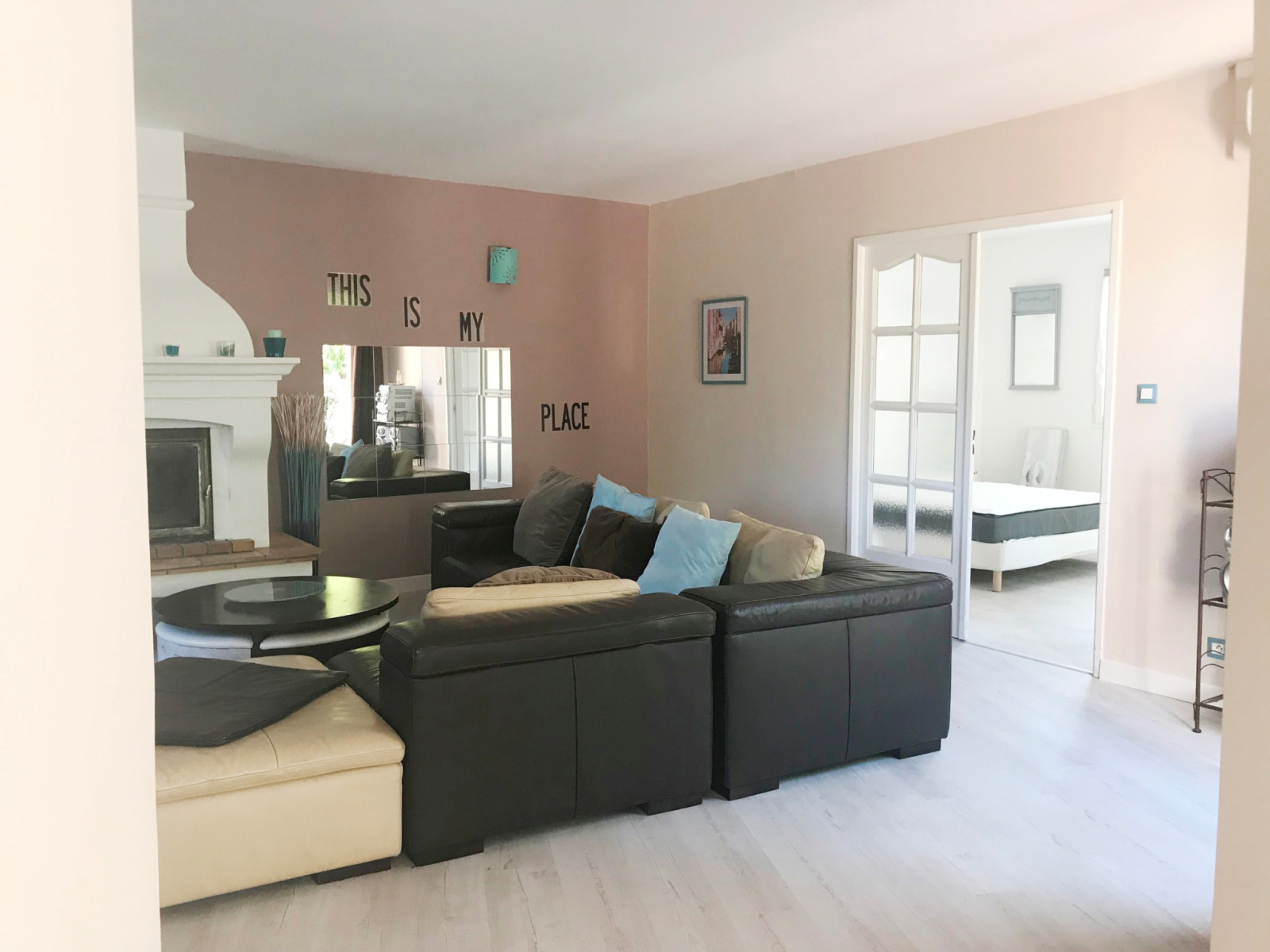 Belle villa de plain pied , au calme composée d'une cuisine tt équipée ouverte sur grand séjour, salon avec cheminée, cinq belles chambres dont une suite parentale , une salle de bain, une salle d'eau, une véranda, un grand terrain arboré avec sa belle piscine chauffée et son pool house complète le tout.