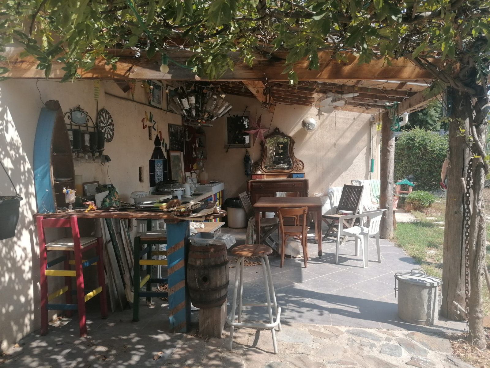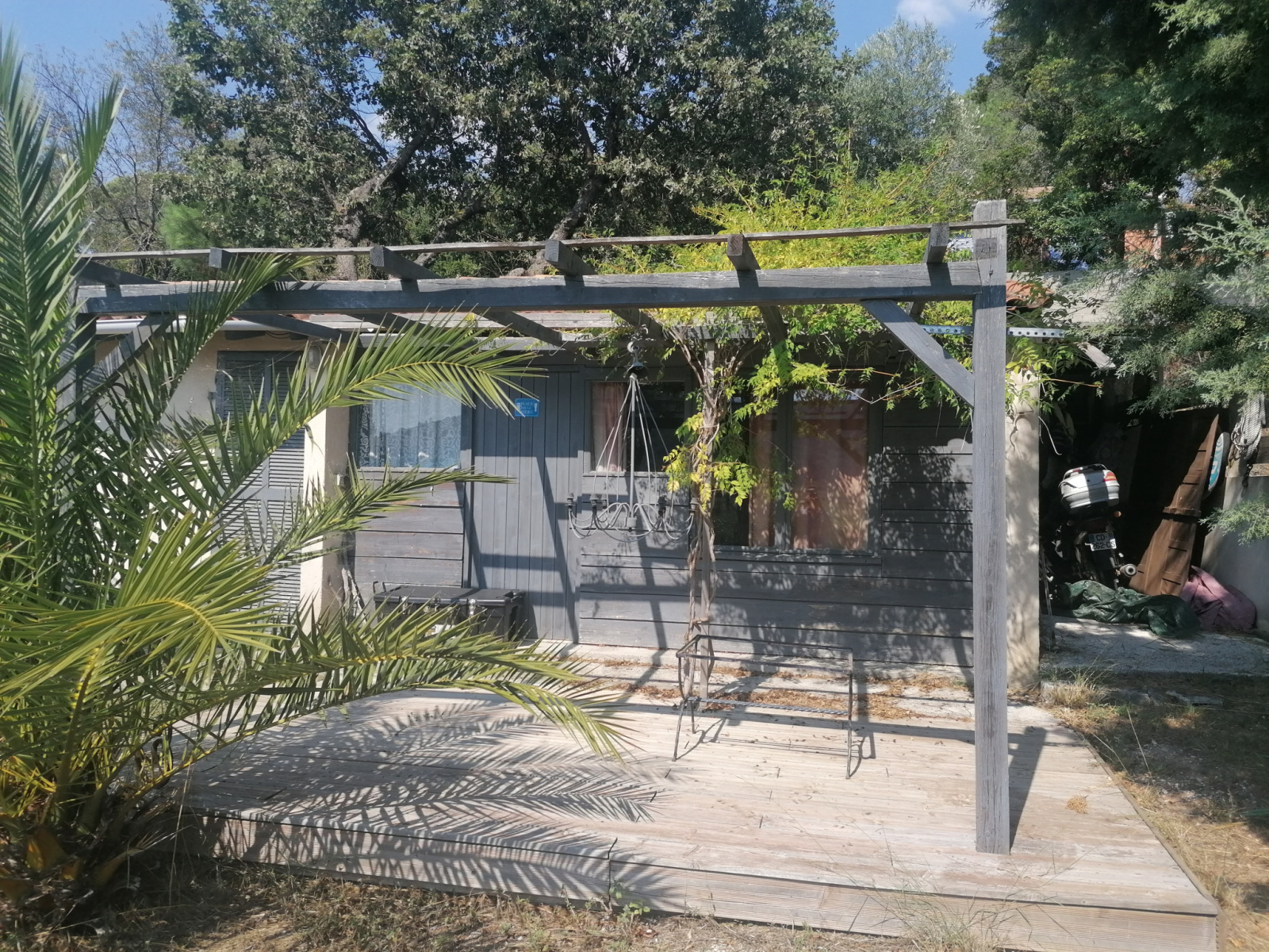 Un garage, une terrasse couverte et une dépendance d'été. sur un terrain d'environ 1150 m2 totalement plat.
