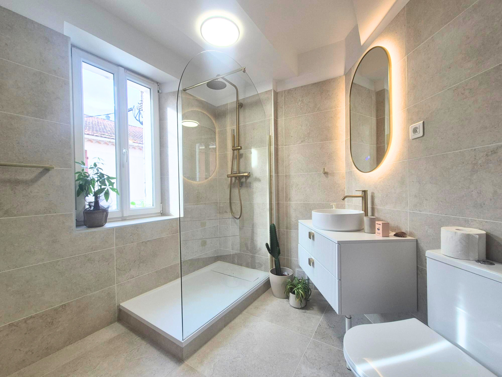 PIERREFEU-DU-VAR EXCLUSIVITÉ Maison de village entièrement rénovée située sur une petite voie à sens unique, au calme. La maison, expo sud-ouest, est composée au RDC : entrée avec cuisine neuve toute équipée, séjour - au 1er étage : un palier, une chambre avec grand dressing et une salle d'eau neuve avec douche à l'italienne, wc et placard - et au 2ème étage : un espace bureau donnant sur petit balcon avec jolie vue sur la chapelle et le vieux village, et un spacieux salon (possibilité 2ème chambre). Fenêtres PVC double vitrage - Chauffage : Radiateur électrique à inertie et climatisations réversibles - VMC.. Stationnement facile à proximité. Possibilité cave indépendante en sus ! Maison en pleine propriété, pas de charge.