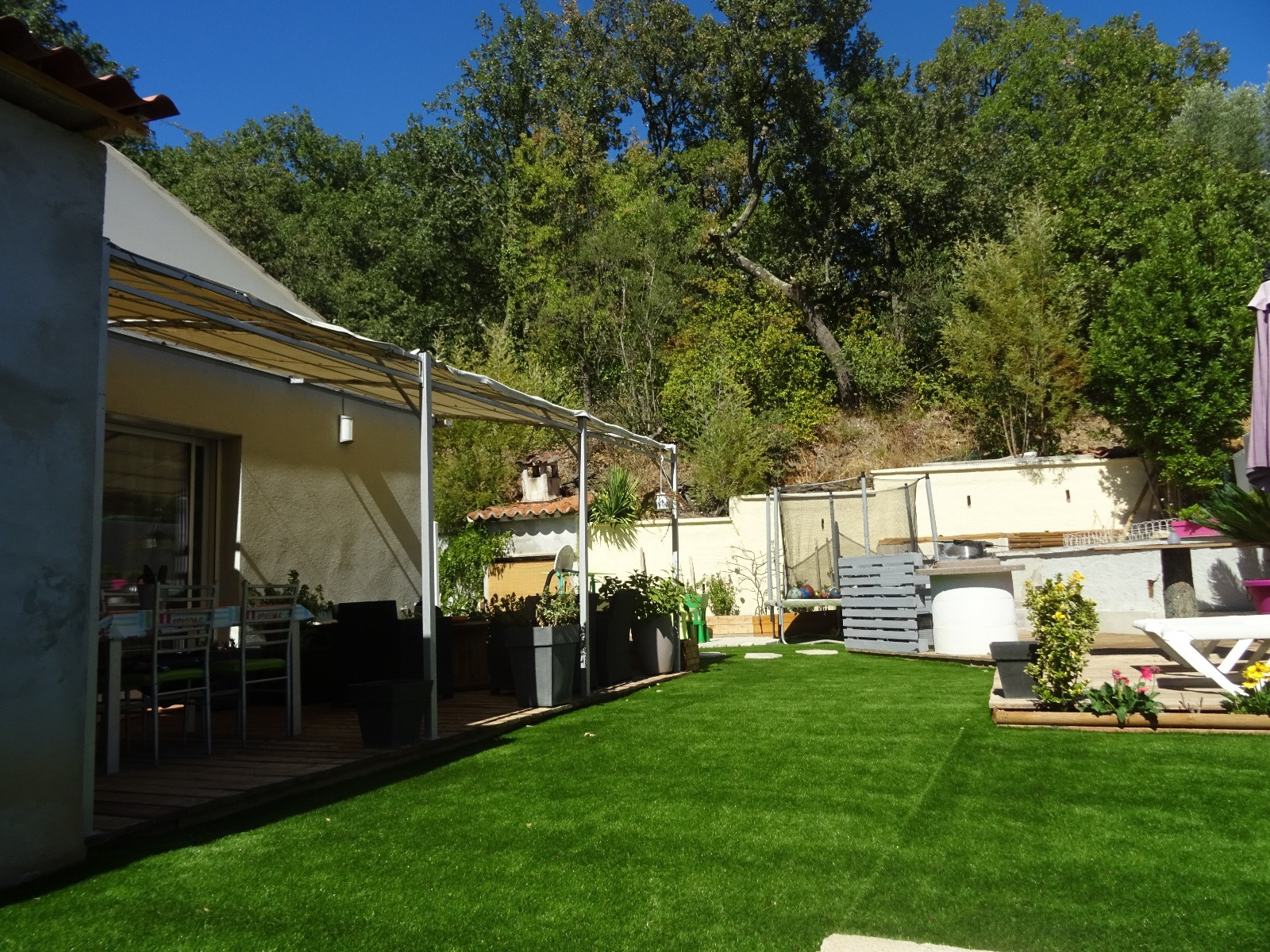Pierrefeu villa récente individuelle de plain pied d'env 81m² composée d'une cuisine entièrement équipée ouverte sur un salon, trois chambres, une salle d'eau, terrain d'env 371m² piscinable . Annexe d'env 8m².
