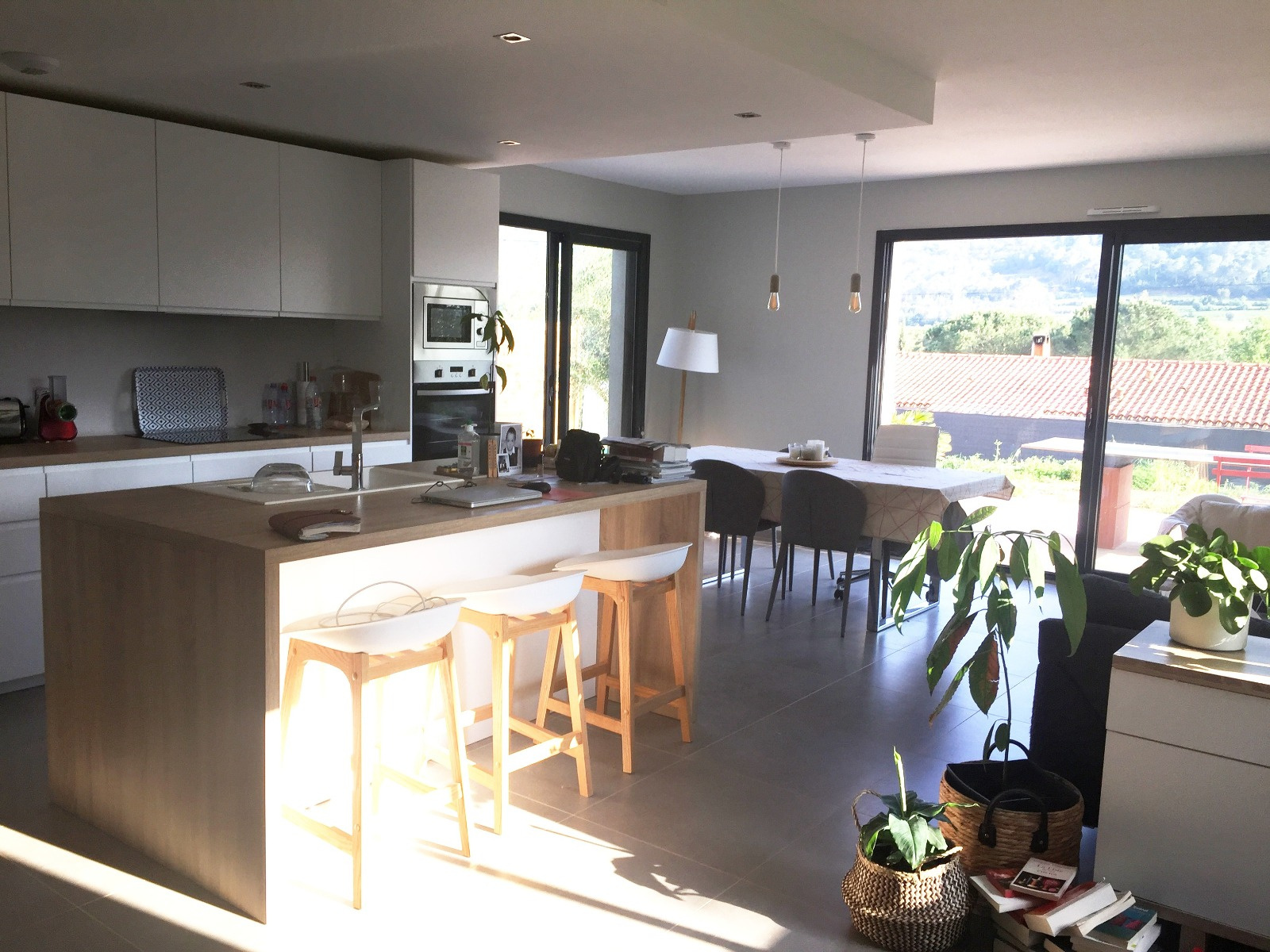 Pierrefeu du Var Villa individuelle de 2017 d'env 100m² dans un quartier résidentiel, composée d'une belle pièce à vivre avec cuisine ouverte sur le séjour , trois belles chambres,, une salle de bain avec douche et baignoire, buanderie, garage, terrasse, terrain d'env 650m². Quelques finitions sont à réaliser comme le jardin.