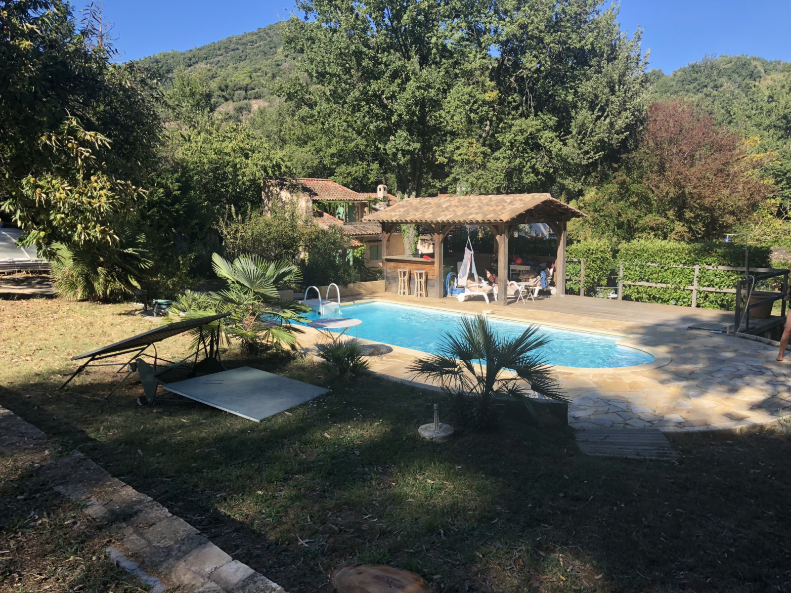 Venez découvrir cette propriété dans un environnement calme et prisé, édifiée sur un magnifique terrain ensoleillé . Une première habitation avec cuisine, salon, salle à manger avec cheminée ouverte sur terrasse. A l'étage une spacieuse suite parentale avec salle de bain, dressing et terrasse. Deuxième habitation se compose d'un hall d'entrée,une cuisine équipée ouverte sur un salon avec cheminée, un bureau, trois chambres dont une avec terrasse tropézienne, salle de bain, grande mezzanine. Une belle piscine et son pool house ainsi que deux annexes complètent cet ensemble charmant à 1 km du centre de Collobrières, petit village provençal qui a su garder son authenticité, 20 min des plages de la Londe, 45min de Saint Tropez . Possibilité un ou deux logements. Travaux de rénovation à prévoir. Visite virtuelle sur demande.