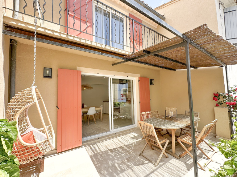 Magnifique maison entièrement rénovée par un architecte d'intérieur.Vous serez séduit par sa spacieuse et lumineuse pièce de vie et sa cuisine entièrement équipée s'ouvrant sur une très belle terrasse ombragée. Quatre chambres dont une suite parentale avec dressing et balcon pour vos petit déjeuner en toute intimité. Deux salles d'eau. Une autre pièce pouvant servir de cinquième chambre ou pour profession libérale. Un double garage complète ce bien.