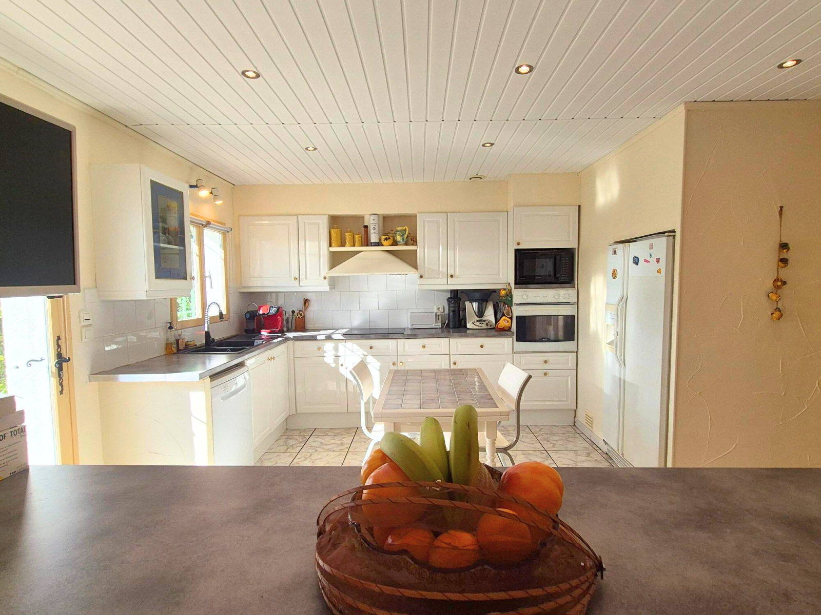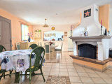 La villa se compose d'une cuisine entièrement équipée, ouverte sur un séjour/salle à manger disposé en L, sublimé par une cheminée centrale.